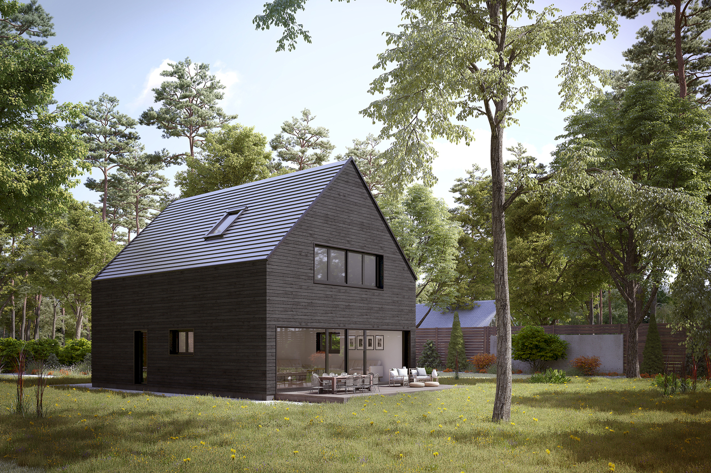 Die Architektur des "Solid" zeichnet sich durch ein reduziertes, auf den Punkt gebrachtes Design aus – jedes Detail ist bewusst gestaltet und folgt der Idee von Klarheit und Funktion. Das elegante Satteldach unterstreicht die zeitlose Formensprache und sorgt für eine harmonische, ausgewogene Silhouette.